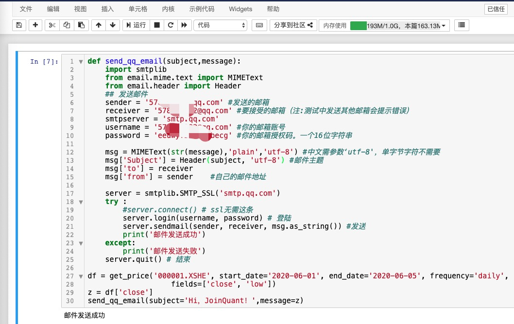 【量化交易】如何在JoinQuant的回测及研究中发送邮件