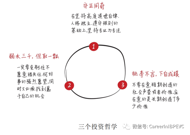 1、三个投资哲学:守正用奇;弱水三千但取一瓢,桃李不言下自成蹊;风物长宜放眼量,高筑墙,广积粮,缓称王;