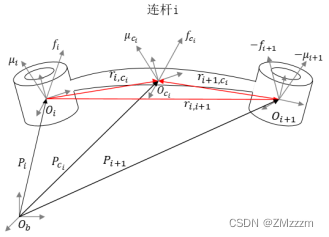 5、由于牛顿方程和欧拉方程都是基于连杆质心坐标系给出的,所以要写出连杆质心处的加速度: