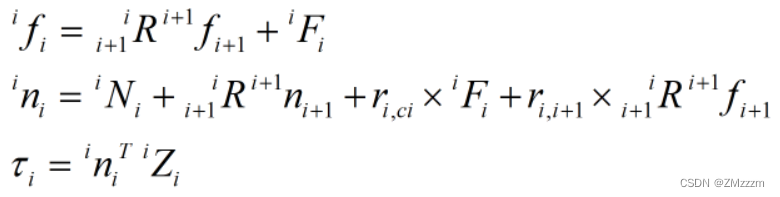 7、力和力矩的递推,反向从机器人的末端向基座方向递推: