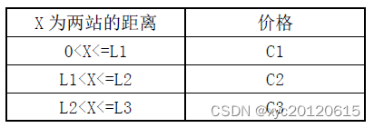 线路上的任意两个站点间的直达票价是由它们间的距离决定的,票价根据以下规则制定: