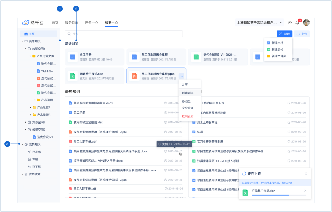 3. 我的知识和收藏并入门户知识中心菜单内,关注终端用户的使用体验,便于用户收集整理相关知识内容。