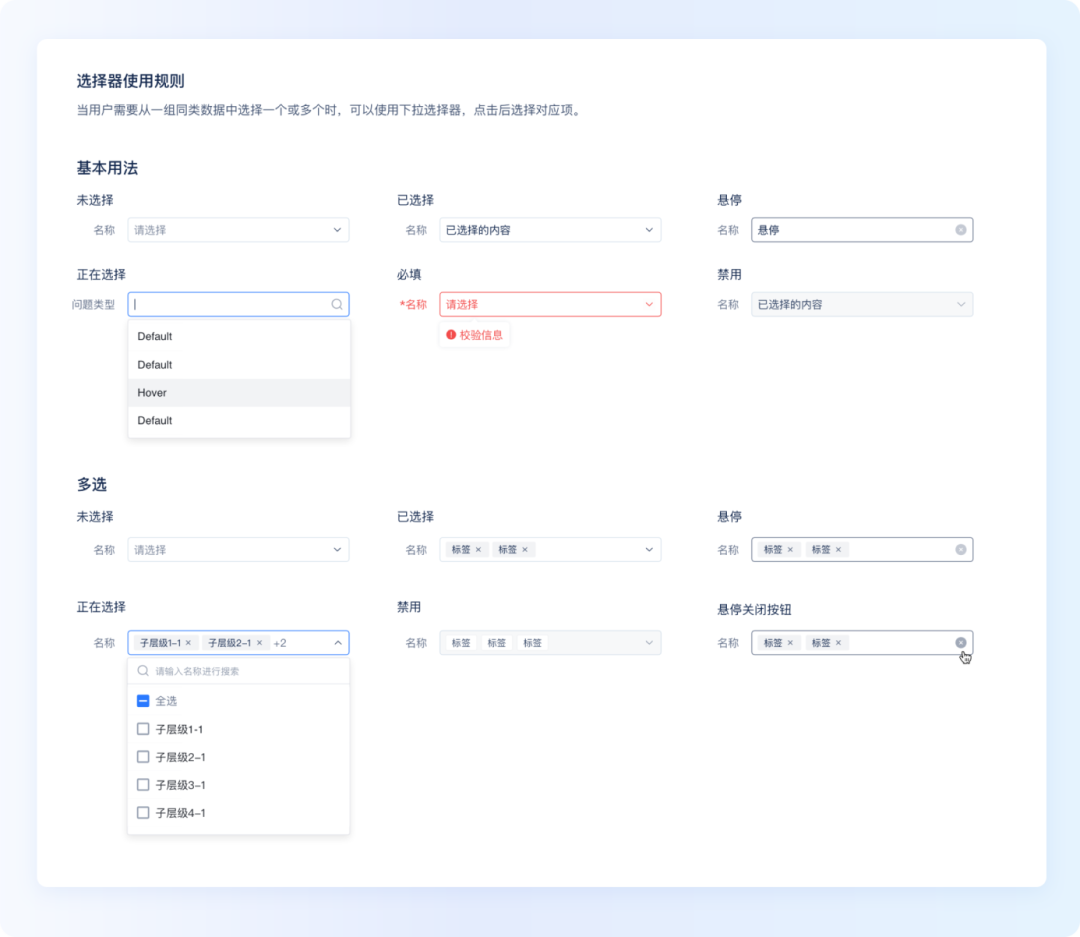 1. 悬停:通过增加悬停效果以及随之出现的清除按钮,给用户反馈的同时,也提供了清除数据的便捷入口。