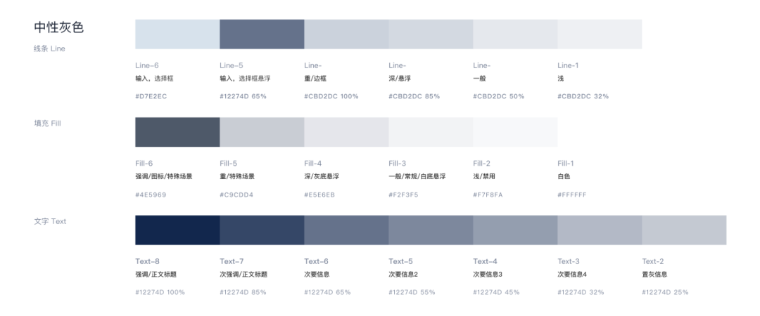 在升级的界面设计中,我们将中性的灰色中加入了品牌色,形成新的“扩展蓝灰色相”,共同构建灰色的色彩体系,应用于图标、容器,从而构建更加具有识别度、舒适清爽的产品界面。