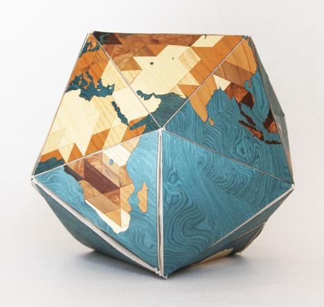 用一个正二十面体内切地球,并且是多面体的顶点均映射到海洋区域,然后将地球使用Gnomonic projection 投影到多面体上,将多面体展成一个平面,保证大陆不会被分裂开。