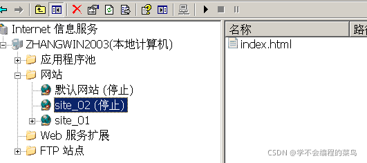 但是会显示site_02无法启动,这就是因为site_01已经使用了当前这个IP和端口,要是再有人用这个同样的IP和port,那用户访问的时候我是展示site_01还是site_02呢?这就出现了二义性。所以就需要我们给这两个网站加一点区别--DNS解析。