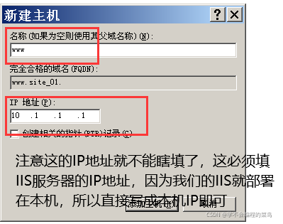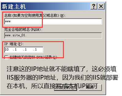 这就用到了下面最后的一步----将DNS中的二级域名中的三级域名和IIS中的网址绑定,即使IP和端口号一样,根据客户机输入的网址的名字不一样,这样就可以定位到具体的网址