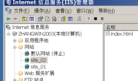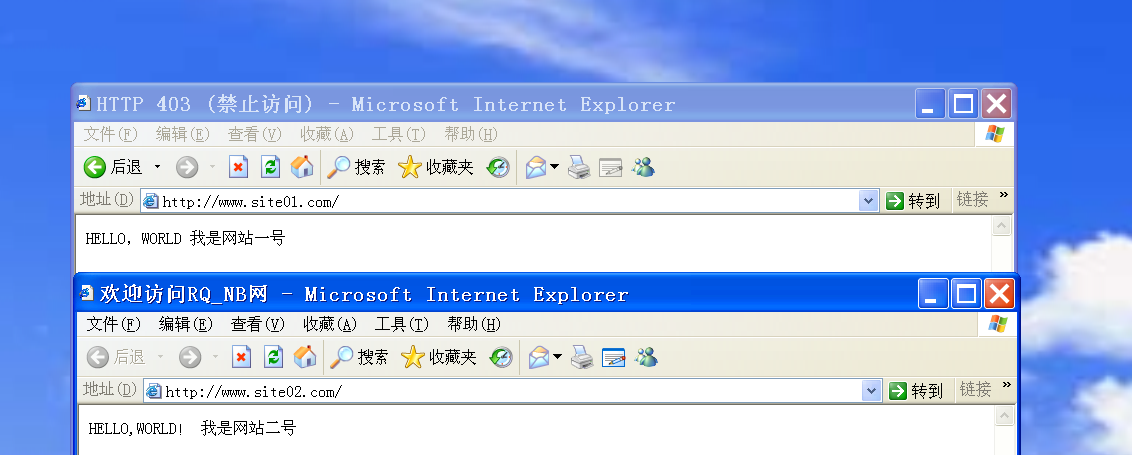 打开一台XP,分别用www.site01.com和www.site02.com来访问。