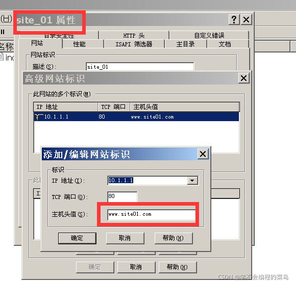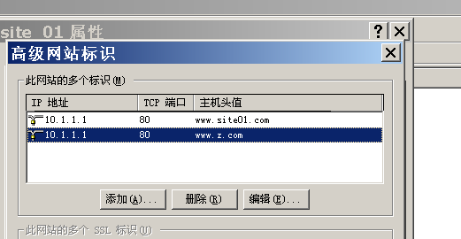 到目前为止说明用户输入www.site_01.com或者www.site_01.com就已经能让DNS解析出IIS的ip地址了。那我们的二义性的问题还是没有解决啊?输入网址我依旧不知道该访问哪个?
