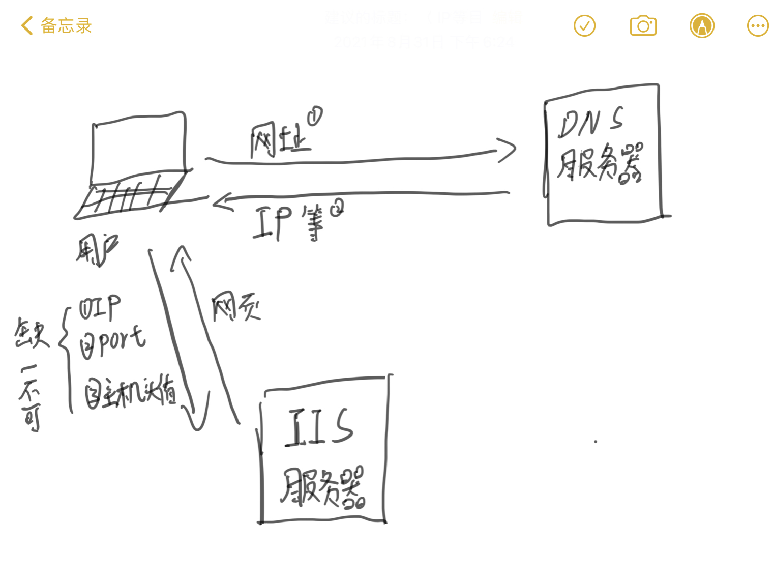 当用户在客户机的IE中用DNS服务器中已经配置好的三级域名搜索时,DNS服务器会为我们返回解析好的IP和Port等信息,但是这些信息并不能确定指向哪个站点,因为一台IIS服务器上有很多站点,他们的IP和Port都一样。所以IIS需要再检查一下用户输入的内容,并以此来区分不同的网站。这也是为什么我们必须将域名和IIS中的网站进行绑定。