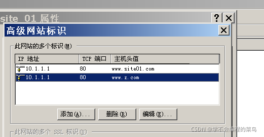 而且注意:一个站点可以绑定多个域名,不只是只能绑定一个,就比如我们给www.site01.com起个别名www.z.com,我们也可以将www.z.com和这个站点绑定