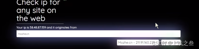 两个结果不一样这时候就需要我们验证结果,我们先分别搜一下两个IP地址,搜索结果会显示具体地区,得知两个ip地址归那个地区,这时候我们就可以网站上看网站最下面的备案号,备案号都写着主站备案的地址找,mozhe的备案号是渝是重庆的缩写,这时候对比一下,那个ip归四川重庆的就是主站ip。还可以查询网站别的地址信息,比如在哪里办公。