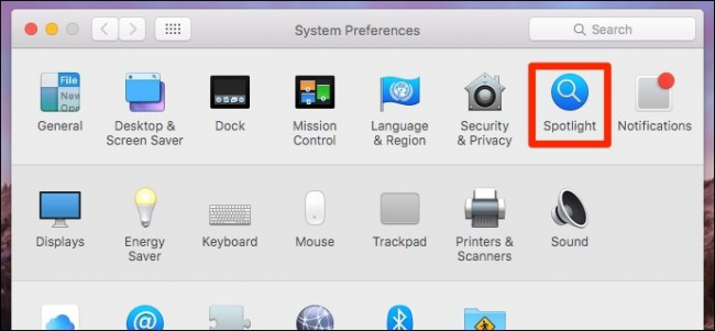 首先,首先打开系统偏好设置,然后单击Spotlight,或者从Apple菜单中将其打开。