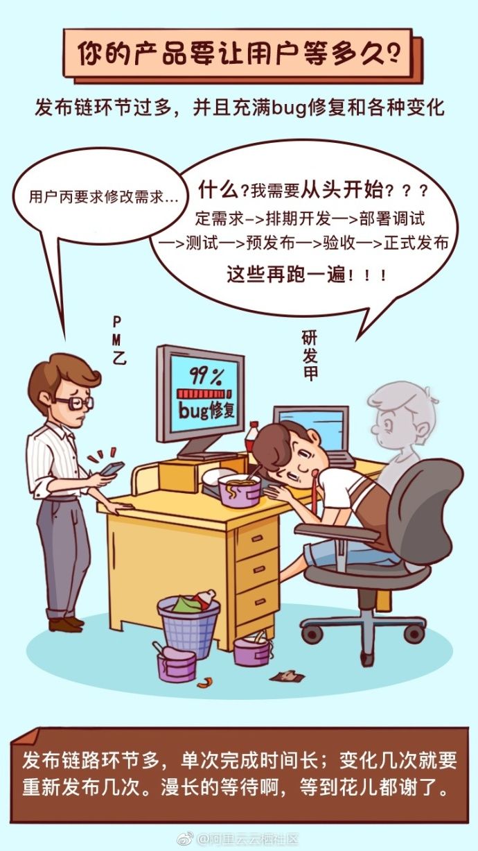 在讲DevOps之前,我们先分析一下,在软件生产的过程中,我们现在究竟遇到了什么问题?请看下面两幅图。(出自阿里云云栖社区)