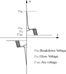 6)电流—电压特性曲线以美国克来电子公司CG2-230L气体放电管为例,如图2所示。