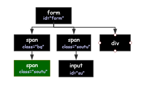 - 查找某元素内部的所有元素,选取 form 元素内部的所有 span: