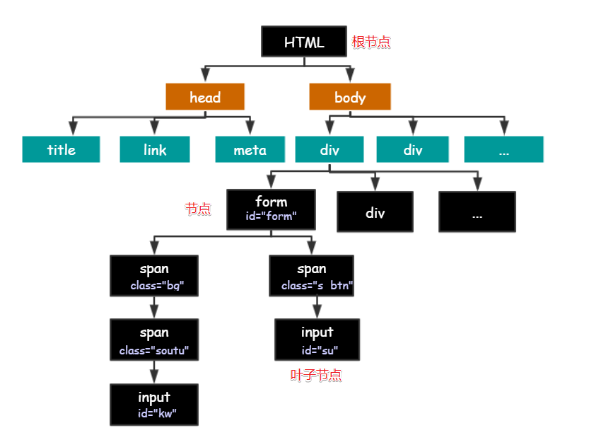 HTML 的结构就是树形结构,HTML 是根节点,所有的其他元素节点都是从根节点发出的。其他的元素都是这棵树上的节点