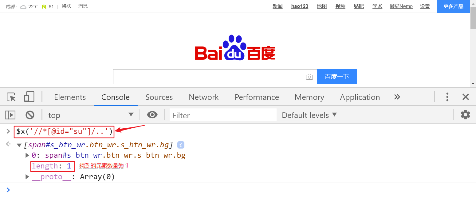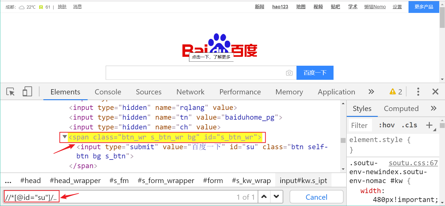 以百度中的输入框和按钮为例,通过拷贝出来的 full Xpath: