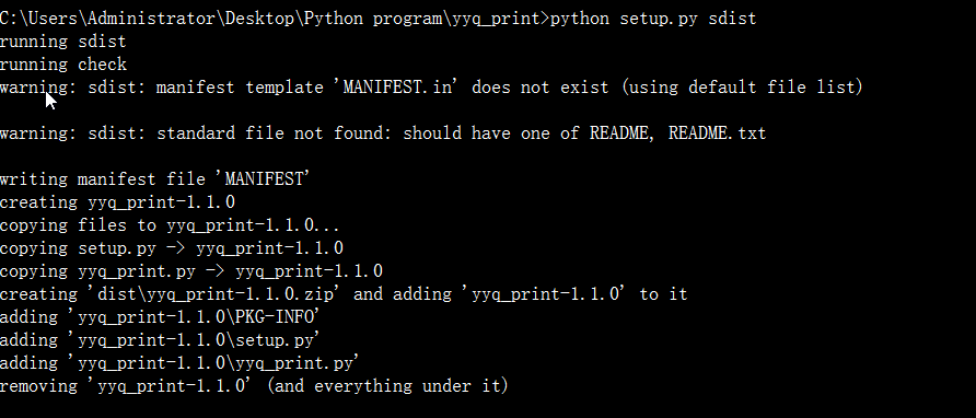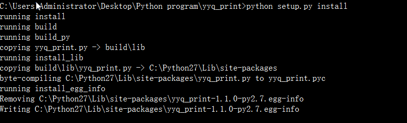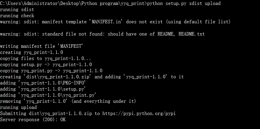 若无错误提示,则发布成功,可以导入模块使用,例如:import yyq_print