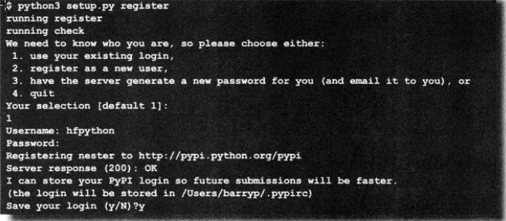 依然在刚刚新建的文件夹内打开终端,输入 python setup.py register