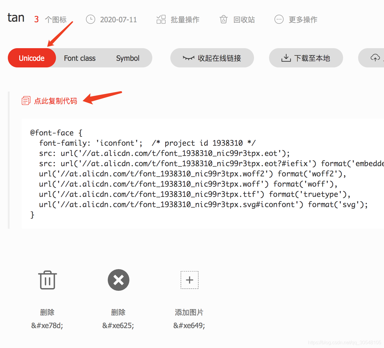 至此就结束了,后面如果再添加图标,依旧到项目管理里,里面会提示你点击更新代码,继续按照上面的步骤即可