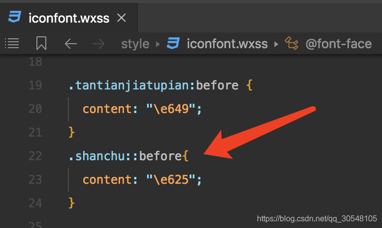 四 复制在线链接代码修改iconfont.wxss