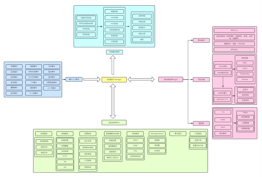例如智能音箱的主业务可以细分为:前端算法模块、识别引擎模块、播放器管理模块,用到相关库为ALSA、ffmpeg、libspexx等