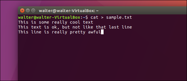 创建文本文件的第一种方法是使用cat命令。 如果要立即将一些文本添加到新文件中,这很有用。