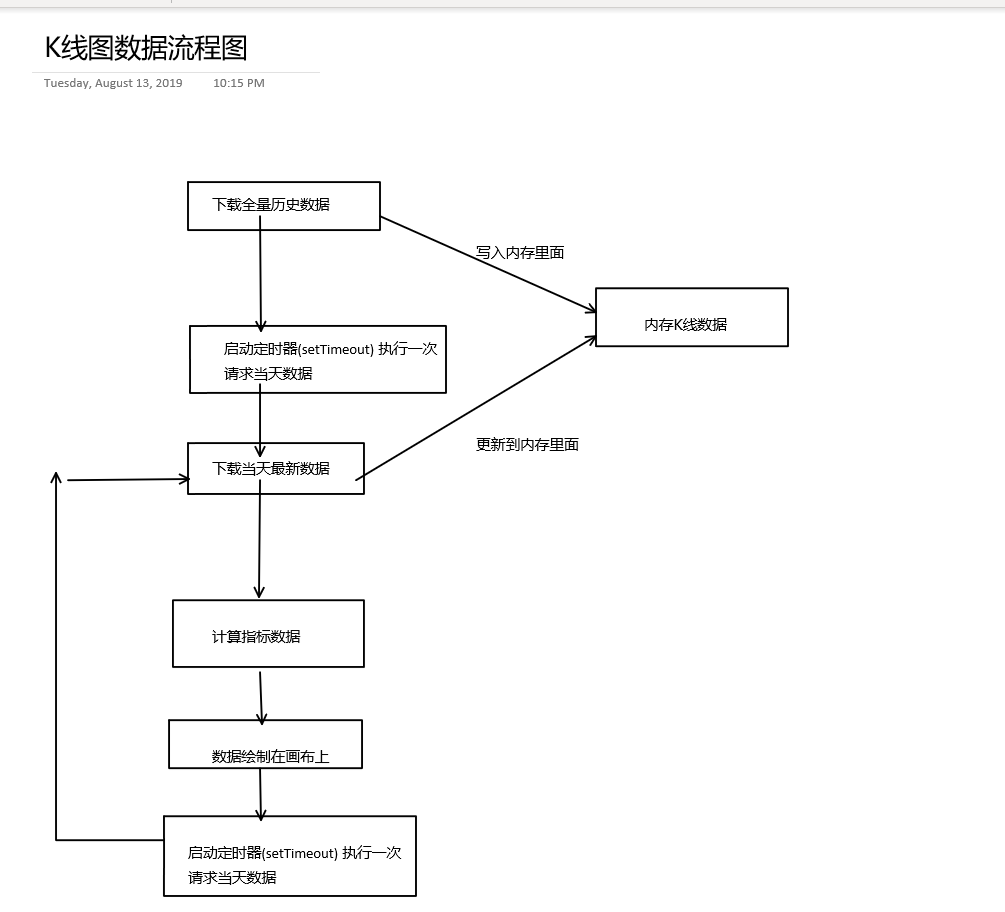 数据流程大致是这样的 下载一次全量K线数据+定时更新当天数据 组合成完整的K线数据。