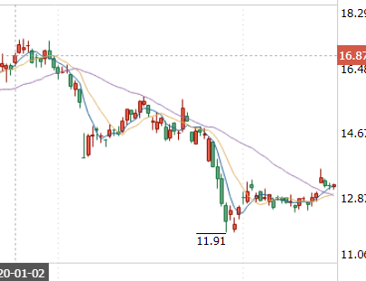 for i in range(df_stock.shape[0] + 1): # 遍历每行,shape为dataframe大小(x,y),表示x行y列if i == 0:# 将交易日期日期转为数字date_num = date2num(datetime.datetime.strptime(df_stock.ix[[i]].values[0][1],'%Y-%m-%d')) # 1表示第二列,为交易日date_plt = date_numelse:date_plt = date_num - i # 由于csv文件中日期为降序排序,这里为减号#print(df_stock.ix[[i]].values[0]) # 打印每行数据 ['000001-SZE' '2020-04-24' 13.17 13.28 13.11 13.24 56600161 747473770.46 nan]open = df_stock.ix[[i]].values[0][2] # 开盘价: i行第3列 df_stock.iloc[i]['开盘价'],用这个似乎输出了的列对不上,输出成了下一列值(最高价)close = df_stock.ix[[i]].values[0][5] # 收盘价:i行第5列high = df_stock.ix[[i]].values[0][3] # 最高价:i行第4列low = df_stock.ix[[i]].values[0][4] # 最低价:i行第5列datas = (date_plt,open,close,high,low)#print(datas) # (737539.0, 13.17, 13.24, 13.28, 13.11)quotes.append(datas)