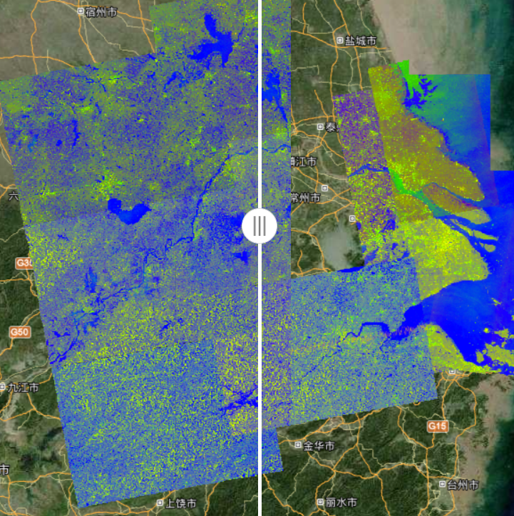 var leftLayer = L.tileLayer(url, {maxZoom: 22}).addTo(map);var leftLayer2 = L.tileLayer(url, {maxZoom: 22}).addTo(map);//左影像集合this.leftAllLayer.push(leftLayer);this.leftAllLayer.push(leftLayer2);var rightAllLayer=[]var rightLayer= L.tileLayer(url, {maxZoom: 22}).addTo(map);var rightLayer2 = L.tileLayer(url, {maxZoom: 22}).addTo(map);//右影像集合this.rightAllLayer.push(rightLayer);this.rightAllLayer.push(rightLayer2 );this.siderLayer=L.control.sideBySide(this.leftAllLayer, this.rightAllLayer).addTo(map);