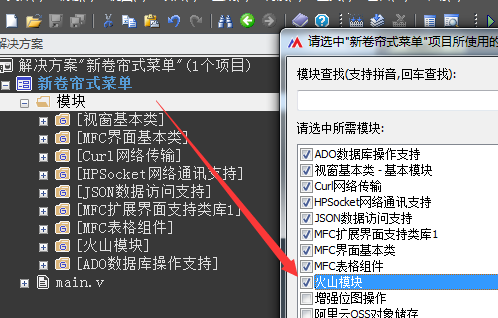 项目右键配置,勾选火山模块,模块下载地址:跳转下载