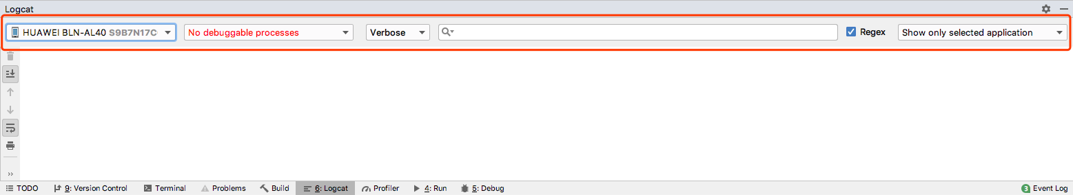 今天,突然发现Android Studio中logcat的工具栏消失了,自己百度了,也谷歌了,费了半天劲也没解决。