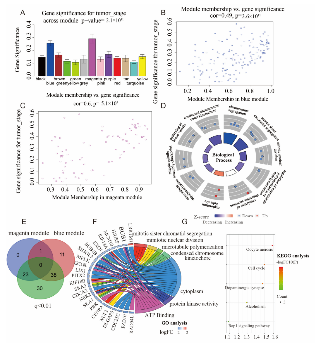 作者利用WGCNA分析方法,发现了61个调控CCA进展和预后的HUB基因。已鉴定出8个HUB基因(VSNL1、TH、PCP4、IGDCC3、RAD51AP2、MUC2、Bub1和BUB1B),它们与CCA的发生机制和预后有显著的交互作用,这些研究结果对于无创诊断早期胆管癌、减轻胆管癌复发和抑制耐药具有重要意义。