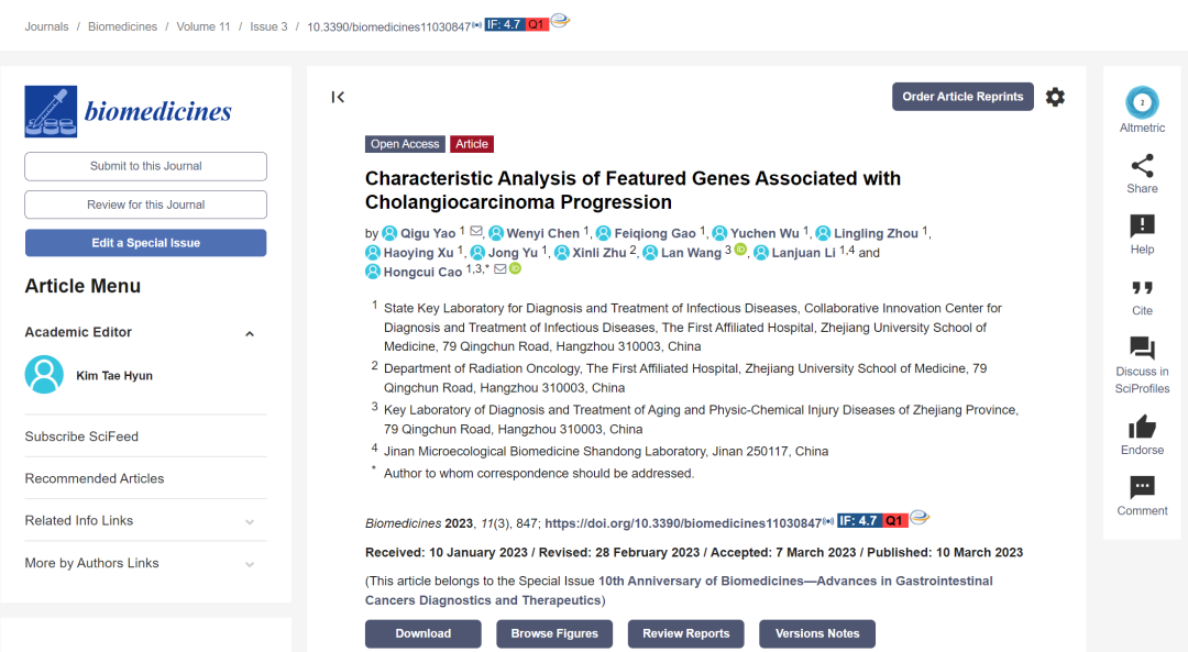 国内也有不少新闻媒体对这一研究成果进行了广泛报道,有一点其实我是非常好奇的,为什么浙江大学李兰娟院士选择在MDPI杂志发表SCI论文,以李兰娟院士在医学领域的影响力在国内或者国际其他顶级杂志都是比较轻松发表的,这是我们普通科研人员难以理解之处
