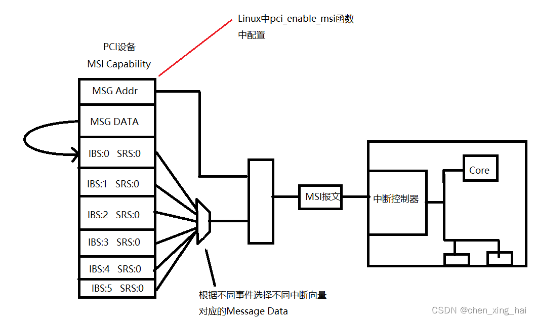 其实PCIe设备在发送MSI中断报文时只是根据中断类型选择对应的Message Data数据,再组装上Message Address后发送TLP报文。