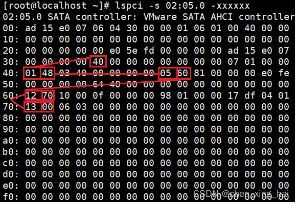如Redhat虚拟机上的SATA控制器配置空间中的Capability位置。