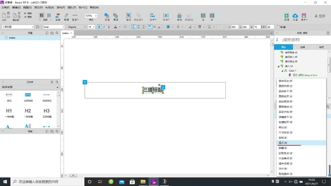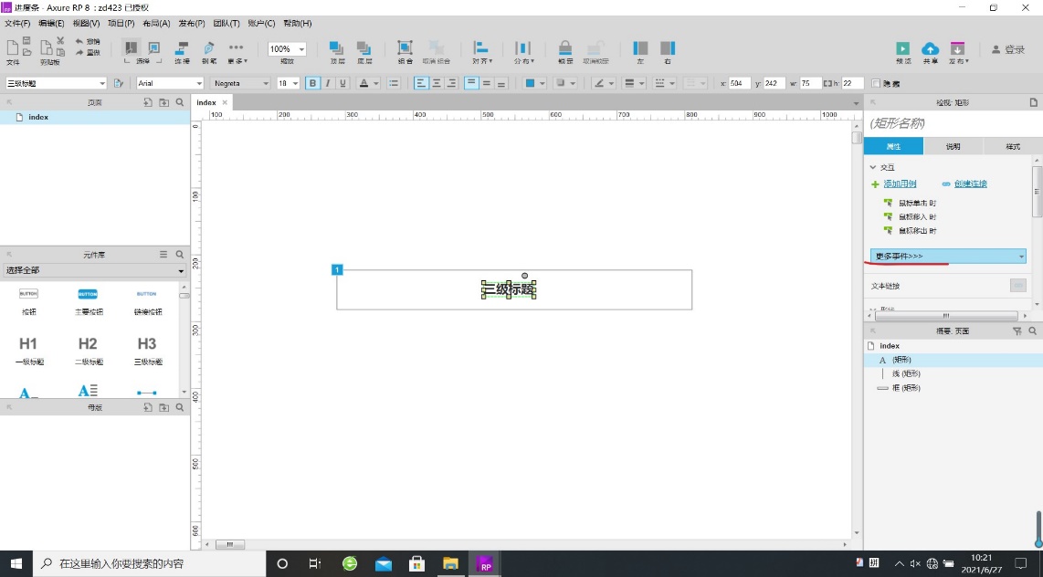 2.在“三级标题”的右边找到“更多事件”,点击它。
