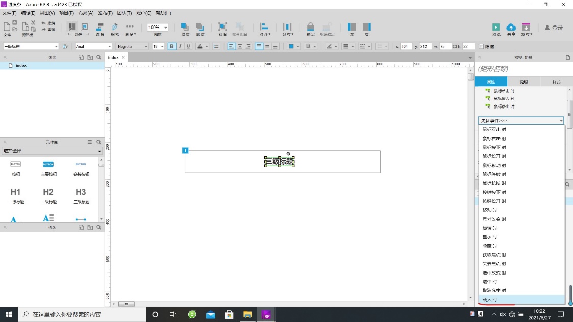3.在“更多事件”里面找到“载入 时”,点击它。