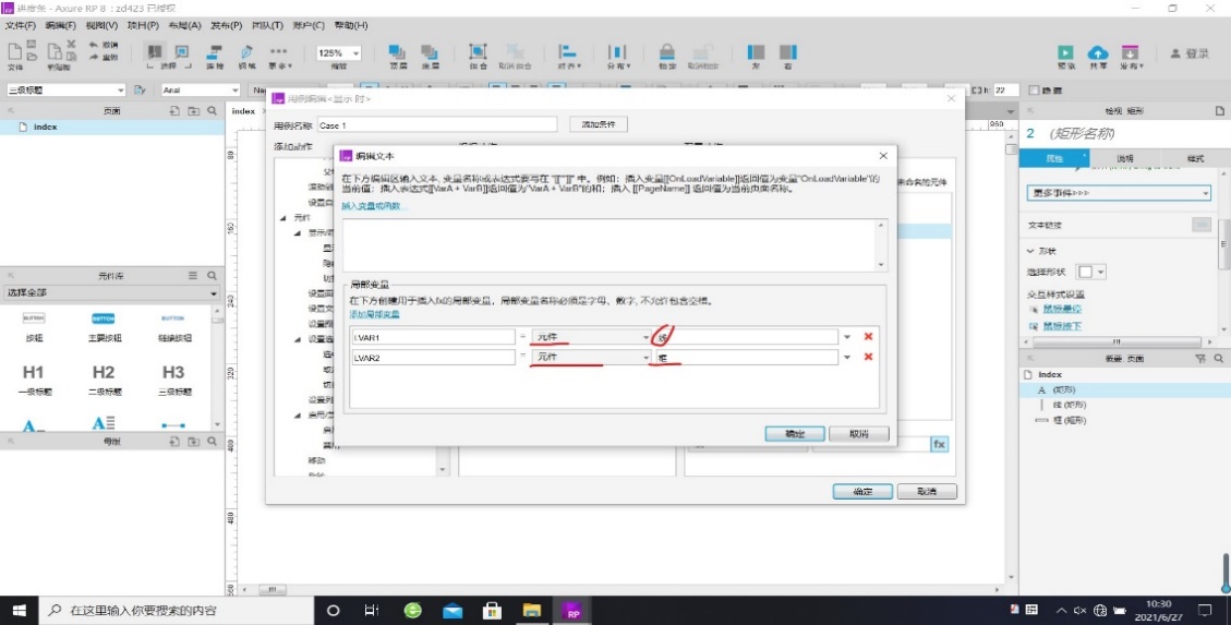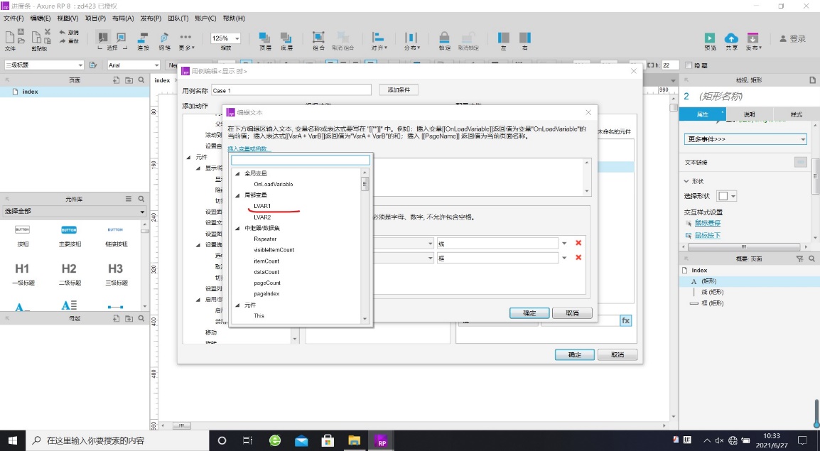 10.二个都选择“元件”,LVAR1选择是“线”,LVAR2选择的是“框”(线是二个矩形中那根短短的)