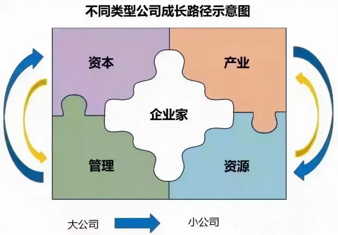 产业型公司和资本型公司呈现「顺时针」方向的成长路径,而资源型公司和管理型公司则呈现「逆时针」方向的成长路径。