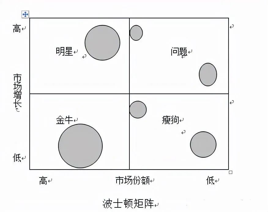 在低增长市场上具有相对高的市场份额的业务将产生健康的现金流,它们能用于向其他方面提供资金,发展业务。