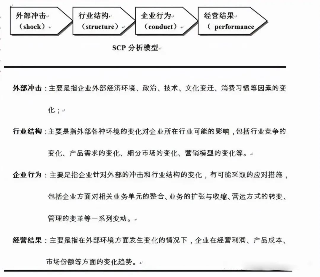 SCP模型从对特定行业结构、企业行为和经营结果三个角度来分析外部冲击的影响。