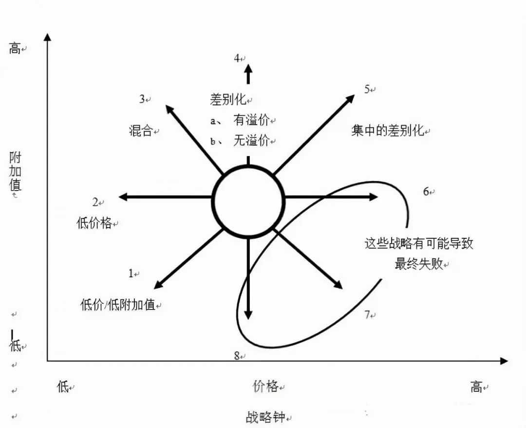 「战略钟」是分析企业竞争战略选择的一种工具,该模型为企业管理人员提供了思考竞争战略和取得竞争优势的方法。