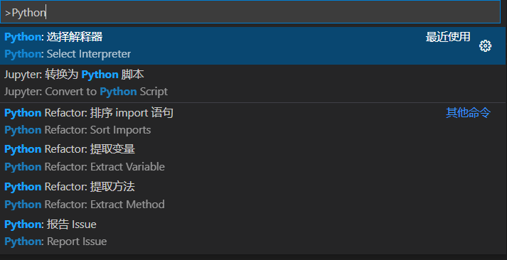 Crtl+Shift+P调出命令界面