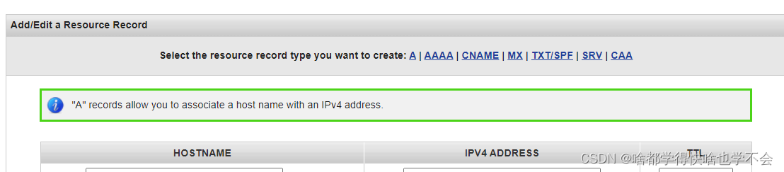 把默认的配置全部删除,选择A创建两条,TTL填3600