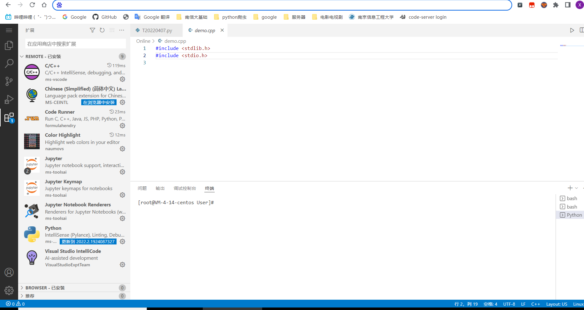 code-server C,python配置
