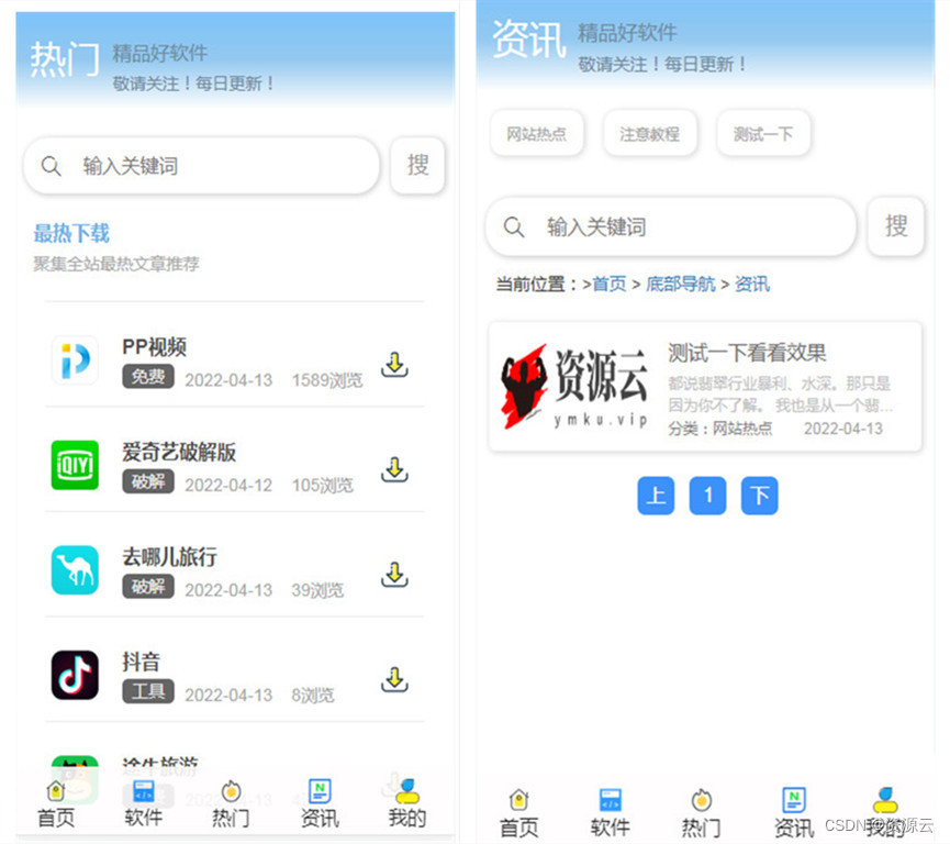 网页版软件库/下站站源码/带独立搜索,文章,公告页面