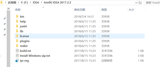 主要关注bin目录下的idea64.exe(启动)、idea64.exe.vmoptions(虚拟机参数配置,可以配置堆内存的初始化和最大值等)和idea.properties(属性配置)。