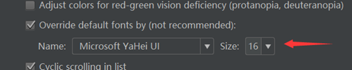 Appearance&Behavior >> Appearance >> Override Default fonts
